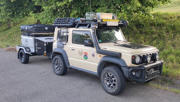 - Geländegängigkeit eventuell eingeschränkt –> Gegenmaßnahme: Für anspruchsvolle 4×4-Touren lassen wir den Anhänger auf einem Campingplatz stehen und fahren mit dem leichten und wendigen Jimny ins Gelände.
