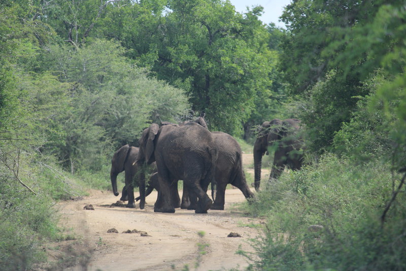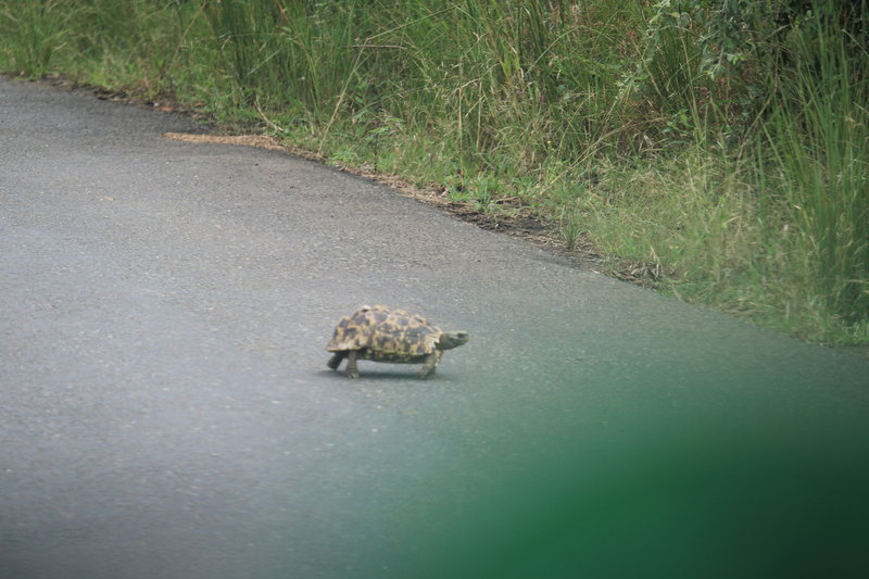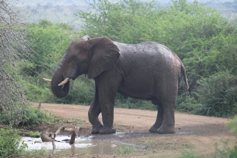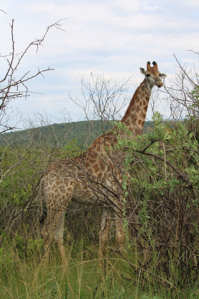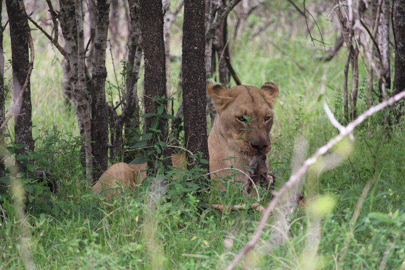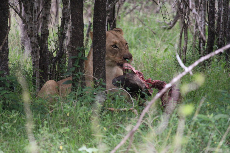 Obwohl wir mit dem Wetter weniger Glück haben, sehen wir viele Tiere. Ganz besonders beeindruckend: Eine einzelne Löwin, die völlig unbeeindruckt von unserer Gegenwart ihre Beute zerlegt und sehr entspannt frisst. Wir sind die einzigen Beobachter und haben diese Sichtung ganz exklusiv. Wie besonders das ist, sehen wir an anderer Stelle im Park. Hier hat ein Gepard ein junges Zebra erlegt. Zig Safarifahrzeuge, zig Mietwagen, sogar ein großer Reisebus sind sofort zur Stelle. Es gibt kein Durchkommen und wir verzichten darauf, uns in die Schlange einzureihen. Ich bin wirklich gespannt, wie das im Kruger Nationalpark wird, wo noch deutlich mehr Menschen unterwegs sind.